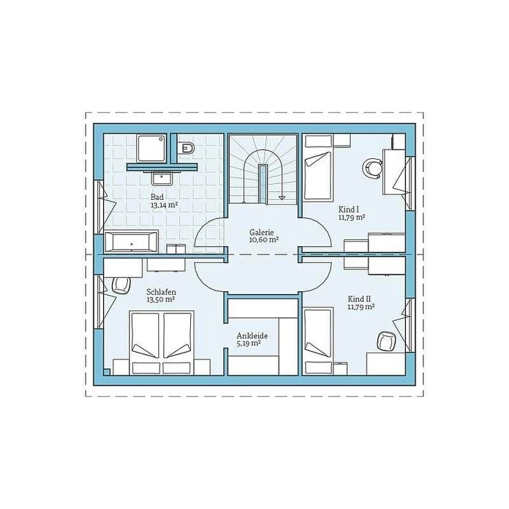 Im Obergeschoss befinden sich zwei Kinderzimmer sowie ein großzügiges Elternschlafzimmer mit separater Ankleide. Ein elegantes Badezimmer mit Dusche und Badewanne sowie ein Abstellraum bieten zusätzlichen Komfort. Das Haus ist QNG zertifizierbar. Somit ist für Sie (Familie mit 1-2 Kinder) die höchste Förderstufe der KfW-Förderung „Wohneigentum für Familien“ möglich und Sie profitieren von zinsgünstigen Krediten, die Ihnen die Finanzierung noch einmal zusätzlich erleichtern. Ob für Sie weitere Fördermöglichkeiten in Frage kommen, klären wir gerne in einem persönlichen Beratungsgespräch. Eine moderne Ausstattung wie Fußbodenheizung, eine Luft-Wasser-Wärmepumpe und eine PV-Anlage mit Batteriespeicher garantieren nachhaltigen Wohnkomfort und hohe Energieeffizienz. Ausbaustufe schlüsselfertig (inkl. Bodenbeläge, Spachtel- und Malerarbeiten und Innentüren)